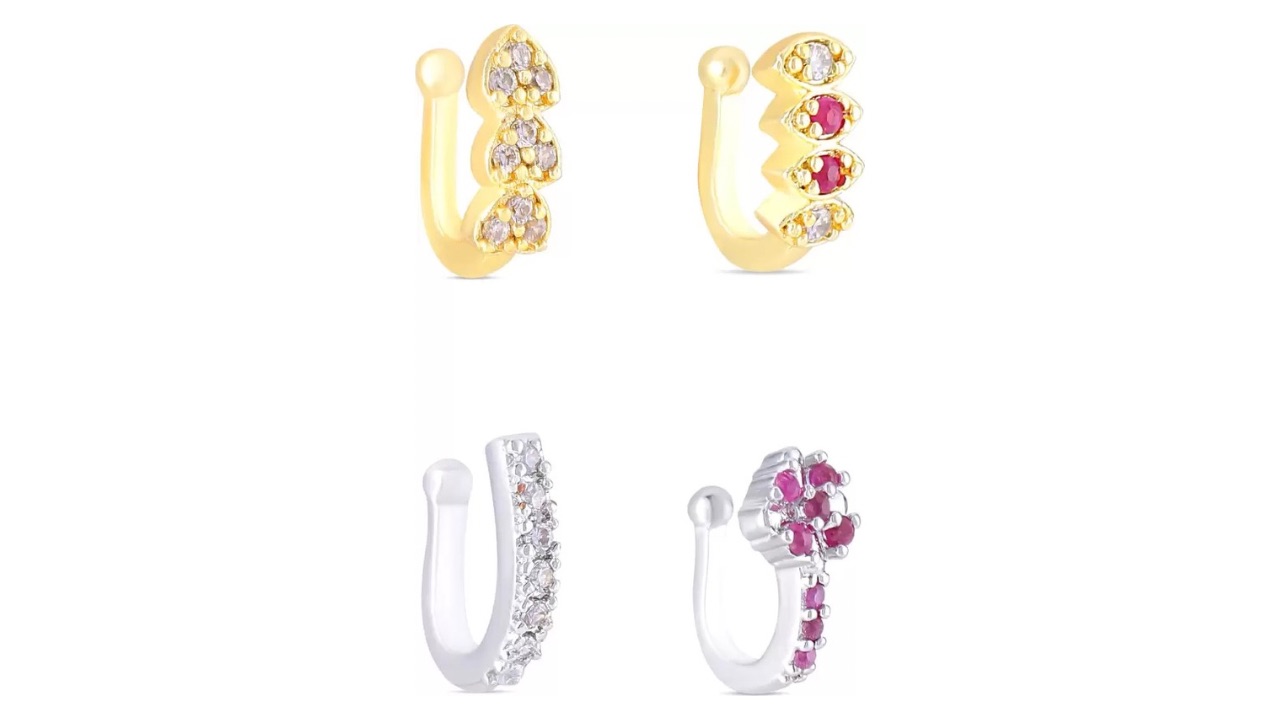 For those who prefer silver-plated jewelry, the Shubham Jewellers Crystal Nose Ring is an excellent choice. Made from alloy and silver plating, it has a sleek and polished appearance. The crystal detail adds an elegant touch, making it suitable for various outfits and occasions.