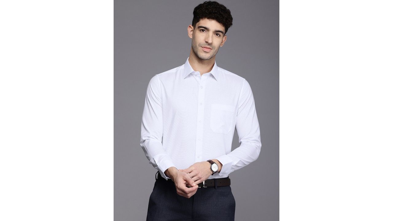 | 5 | Louis Philippe Slim Fit Self Checked Pure Cotton Formal Shirt | Cutaway collar |