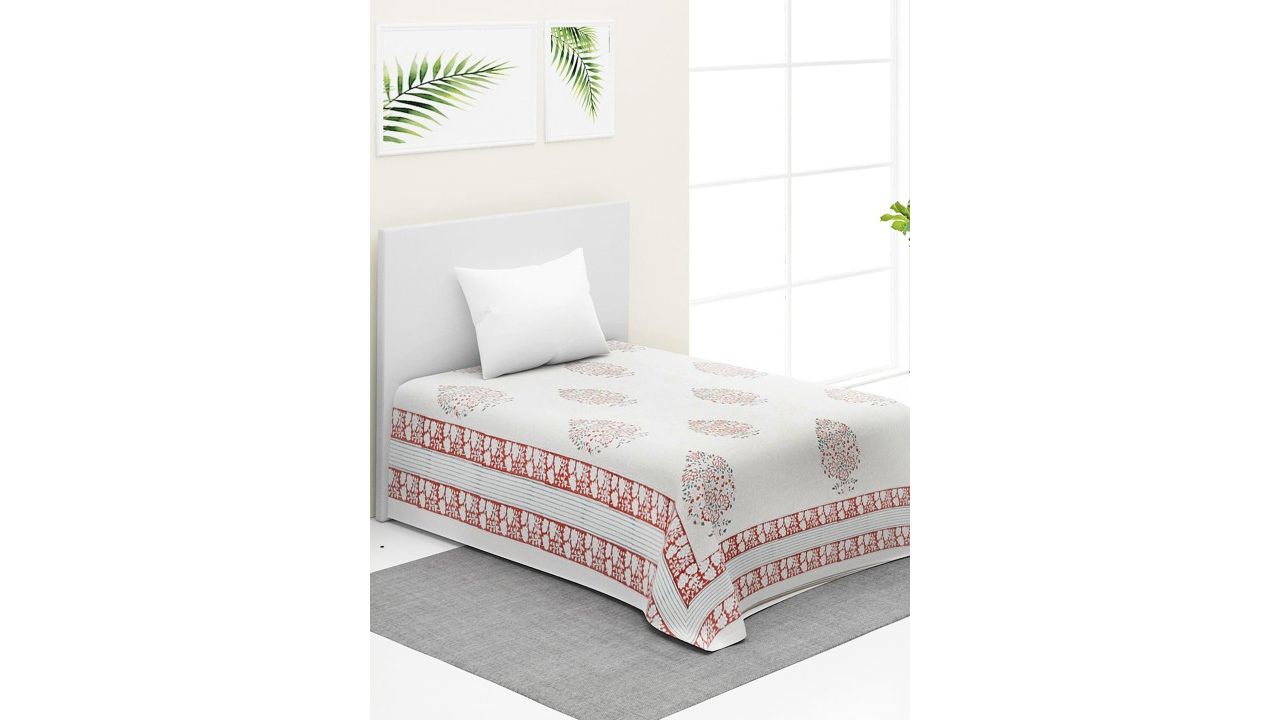 FabIndia Red & White Floral Printed Cotton Double Queen Bed Cover